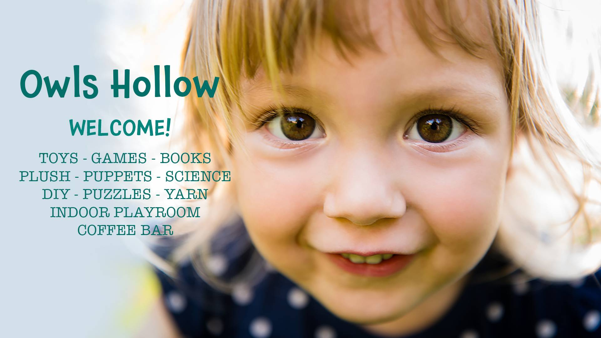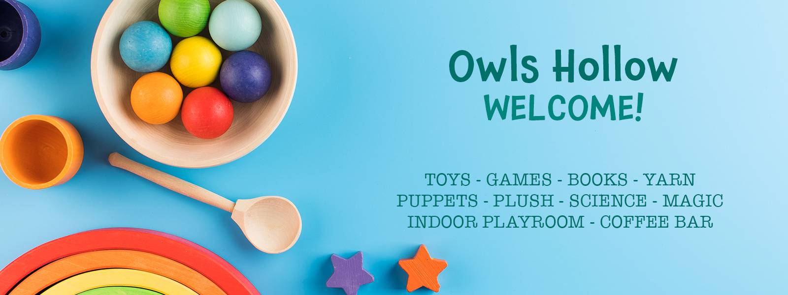 Owls Hollow is a family-run toy store with an indoor playland and coffee bar. We have been in business since 2000 and we sell an extensive variety of products for all ages including toys, games, puzzles, books, baby items, arts & craft supplies (including yarn), Lego, Playmobil and more. Our playroom is geared toward pretend play and imagination. We also have lots of birthday parties in the playroom. Our coffee bar serves delicious espresso-based coffee drinks. We strive to offer excellent customer service, knowledgeable information and fun!