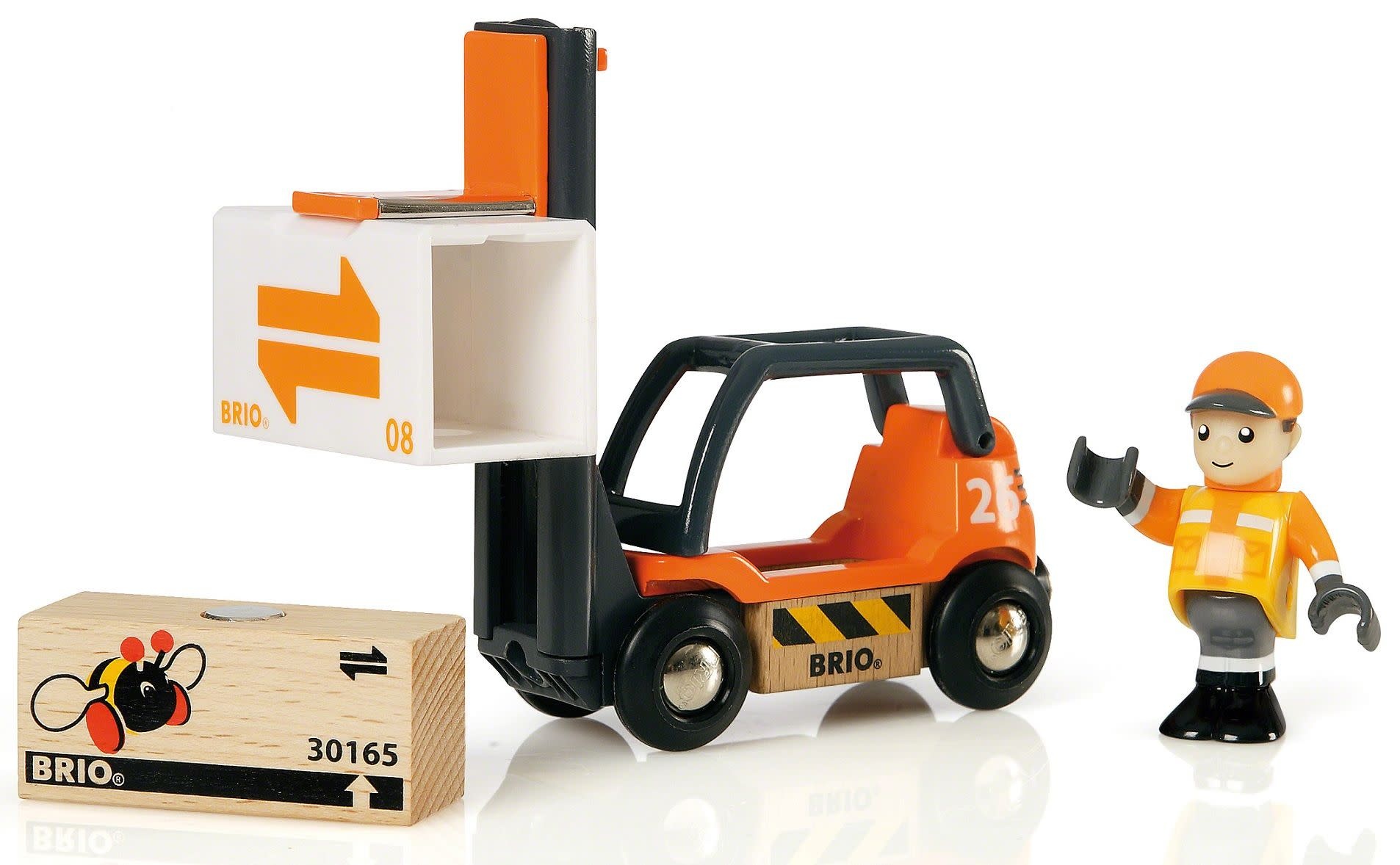 Goods and cargo are coming and going with trains and trucks from all directions. Use this detailed toy fork lift to help the worker. Lift the loads up, down, off and on trains and trucks with the help of the lever. The poseable figure fits perfectly inside the driver´s seat.