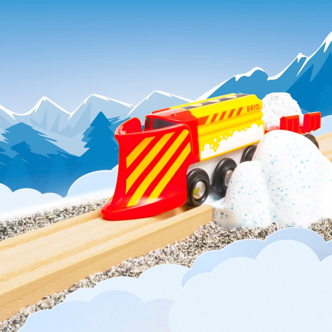 Clear the snow: Lower the blade into place and then power through the snow to push it off the tracks. This toy train also comes with a scenic snowy railway track to really bring the cold to your BRIO World.
