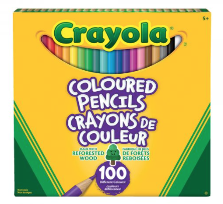 Great for use at home or school, Crayola Coloured Pencils are an essential creative tool for kids. With a wide range of vivid colours, Crayola Coloured Pencils are ideal for creating and colouring maps, completing art or science projects, and making signs and labels. Made with thick, soft leads that won’t break easily, the pencils create brightly coloured lines that are great for school projects and detailed artwork. This 100 count box of coloured pencils contains 100 different colours for endless possibilities!