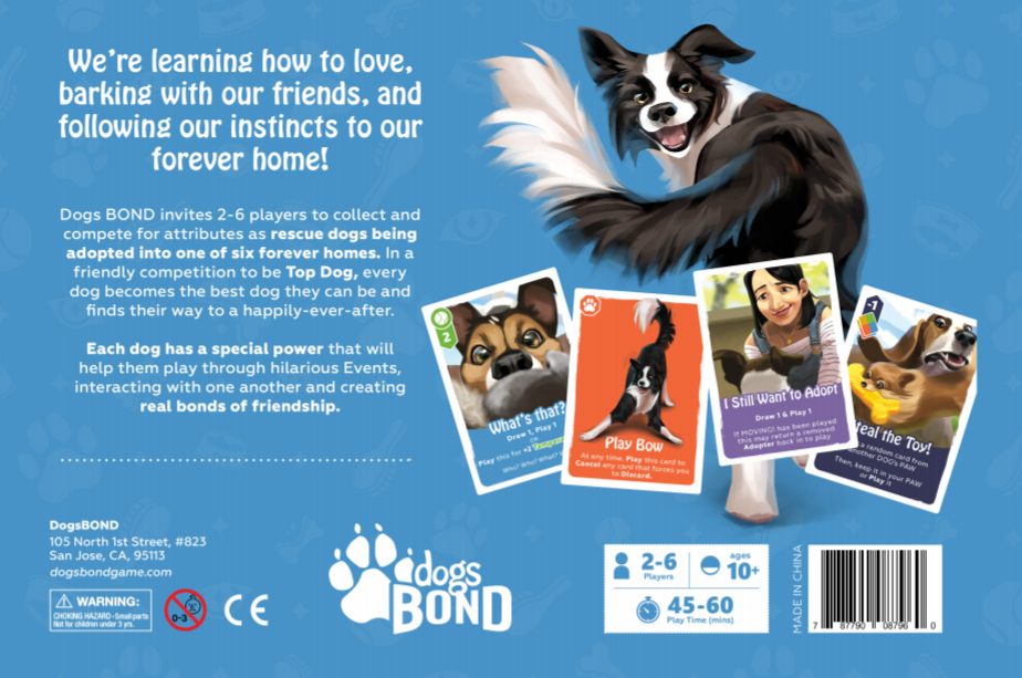Dogs Bond is an engaging board game that also brings "pawsitive" change to conversations about rescue and adoption. Dogs Bond infuses the rescue journey with play, whimsy, joy and hope.