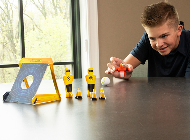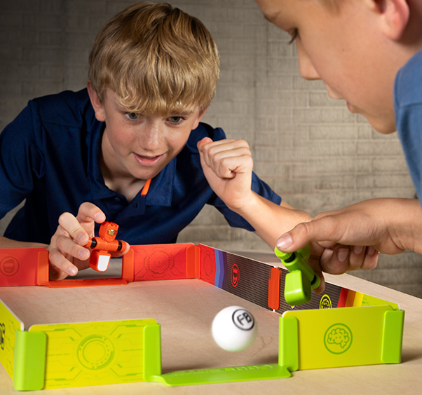 - Squeeze the arms of the Foosbots to make them spin and kick the ball