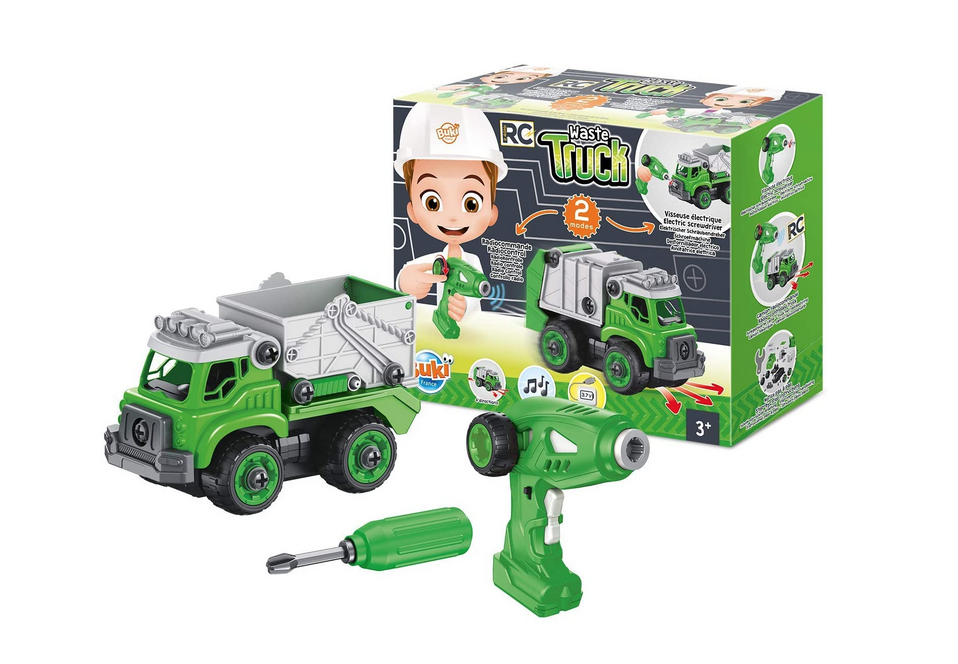 Assemble your truck with the electric screwdriver. Once assembled, switch on the motor and drive the truck via radio control!