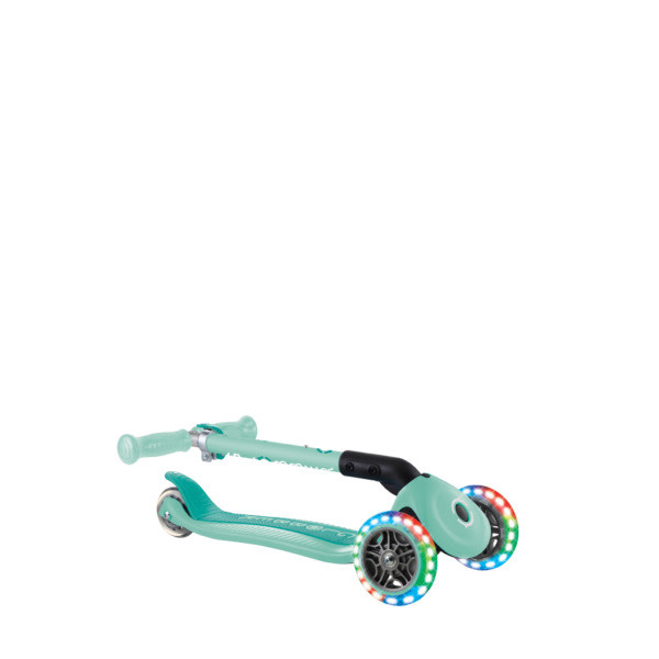 Can you start scooting at 2 years old? With JUNIOR FOLDABLE LIGHTS, you can! Designed with toddlers in mind, this 3-wheel light-up scooter for toddlers is packed with all the essential features of our signature 3-wheel kids’ scooter—a patented steering lock and folding system with a push button and an adjustable T-bar—but redesigned to fit 2-year-old toddlers with a wide and low deck and battery-free LED light-up wheels.