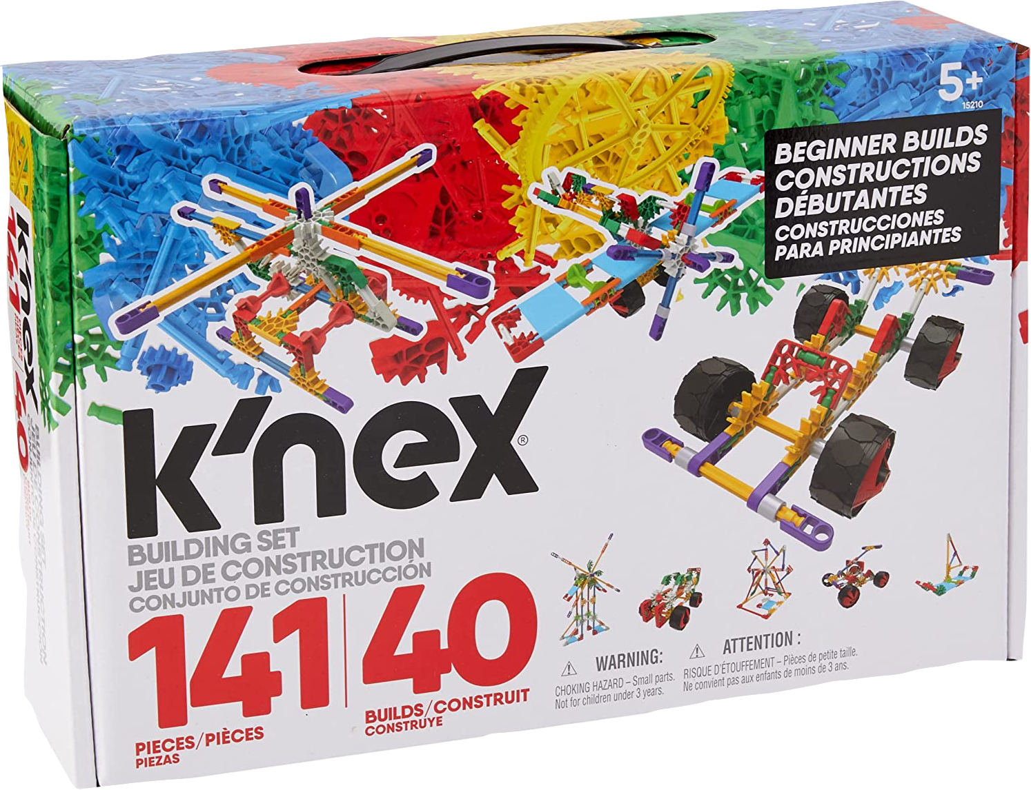 This beginner building set includes 141 parts, including K'NEX rods and connectors which are manufactured in a zero-waste, landfill-free facility in Pennsylvania