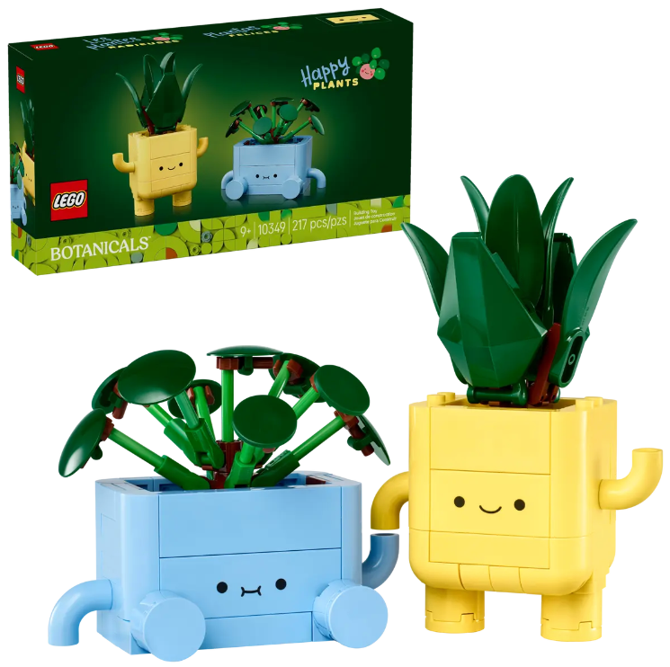 Plant seeds of joy with the LEGO® Botanicals Happy Plants (10349) building set for kids aged 9 and up. Blooming with adorable details, this set lets girls and boys get creative as they build 2 joyful LEGO plants. The adorable set features a baby dracaena plant that stands up and a baby pilea plant that sits down. It also features a yellow plant pot and a blue plant pot that are adorned with cheerful cartoon faces and are interchangeable, letting kids decide which colored pot they would like to use for each plant. Once budding gardeners have finished assembling the plants, they can display them together or separately as bedroom or shelf decor that will bring smiles to any space. A great craft project for kids to complete independently or with a friend, this plant building kit makes a thoughtful gift for girls, boys and plant lovers, who will delight in creating plant decor that will last forever. Set contains 217 pieces.