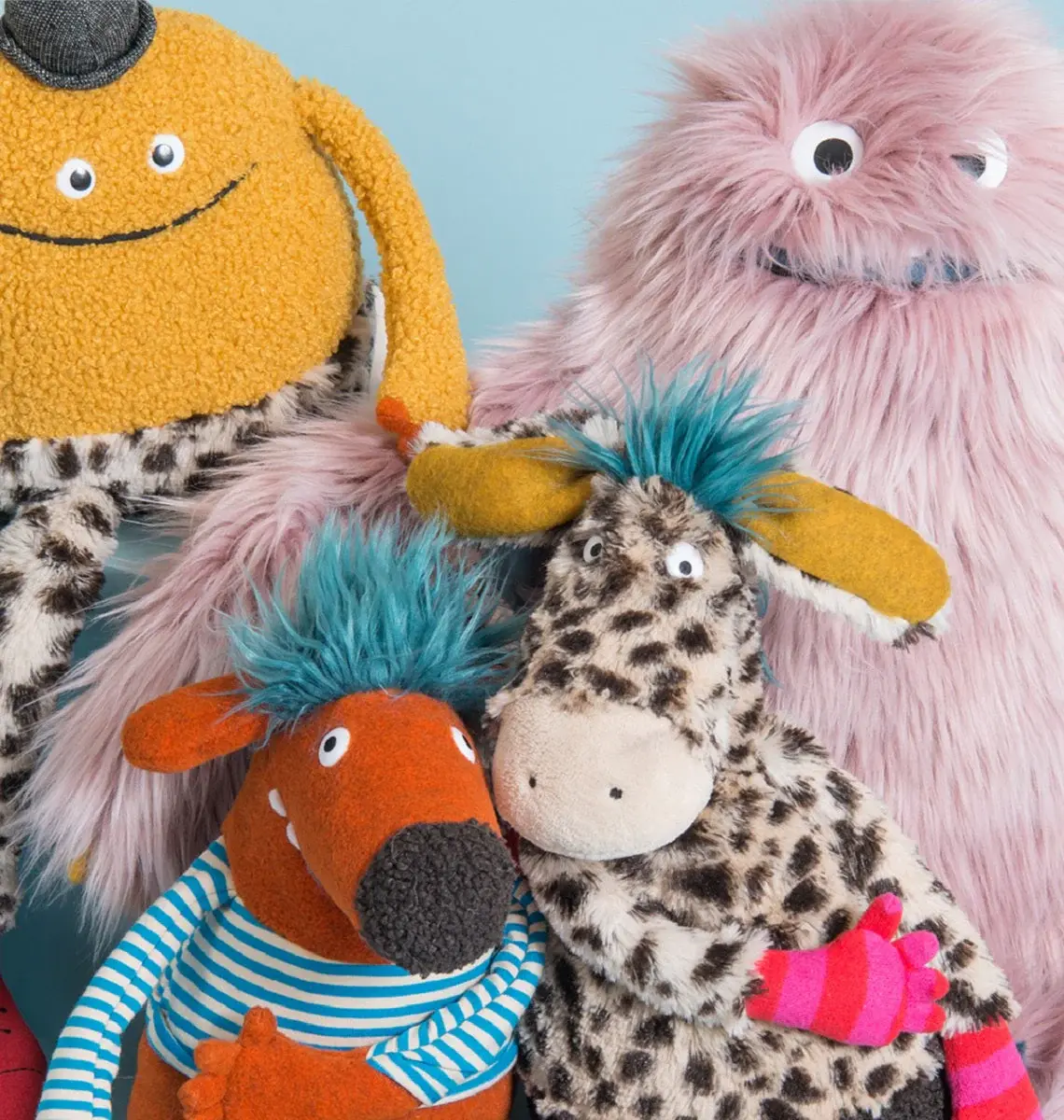 As the illustrator and author of the 'Gouniche' character and the adventures of the 'Flops', Delphine Durand has teamed up with Moulin Roty to create a quirky collection of colourful characters: Les Schmouks. Six months of sketches, discussion, stitching and seeking out the right furry fabrics have led to the birth of these brightly coloured friends, with interesting textures and big round eyes. Their huge smiles, disproportionate bodies and crazy fur make them a truly appealing bunch