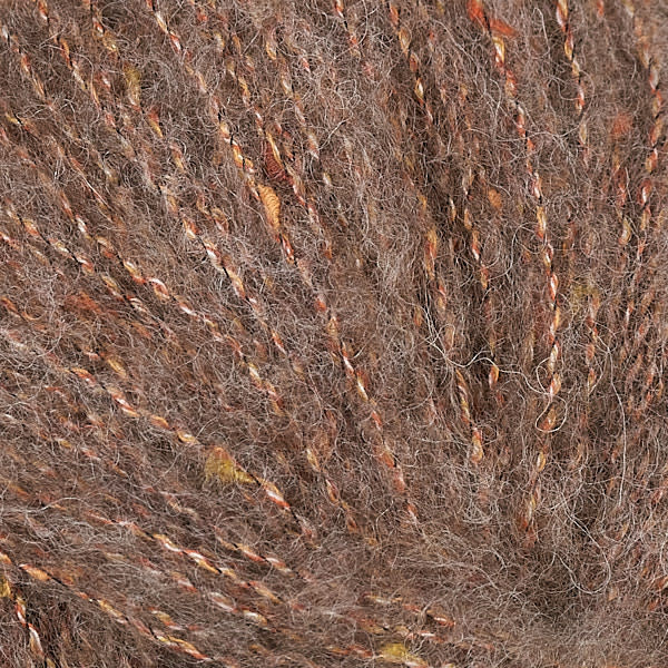 Brushed alpaca creates a soft halo while the cotton, wool and nylon core seem to illuminate flecks of color in our new yarn Mistico. The fabric created with this yarn is soft and light but retains a good stitch definition.