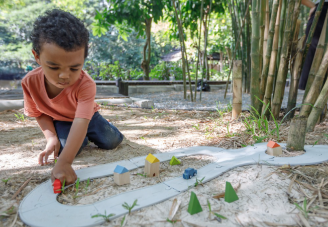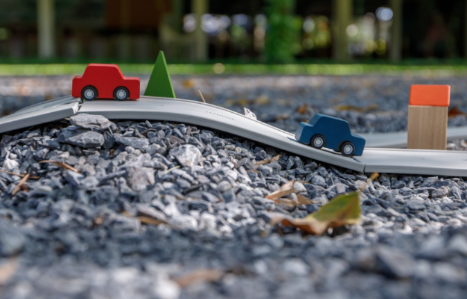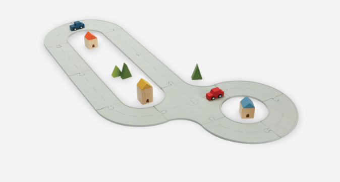 Pave your own path and go on a journey with the Rubber Road & Rail set! The flexibility of the rubber allows kids to create unique city infrastructure for play. This set comes complete with 11 pieces of two-sided rubber tracks, 2 cars, 3 buildings, and 3 bushes. (19 pieces in total)