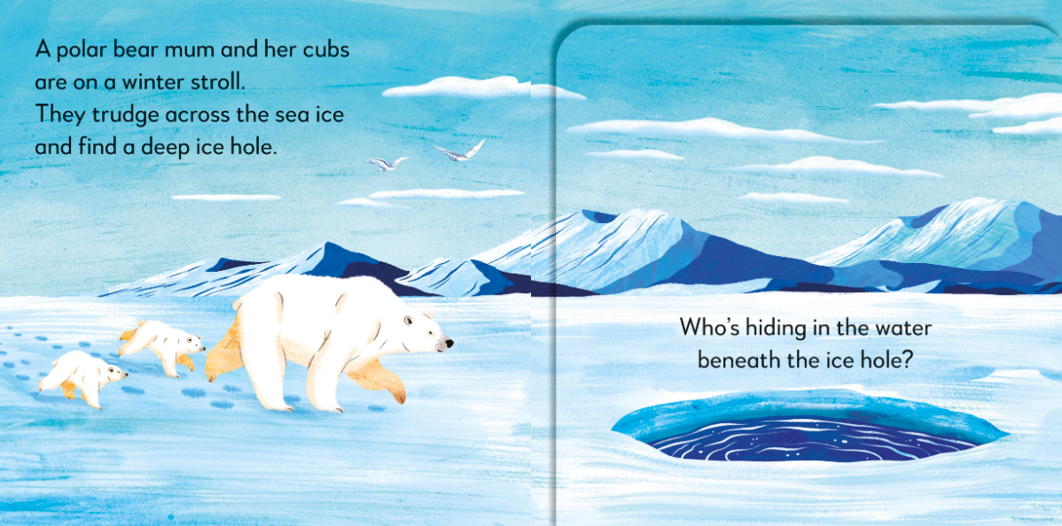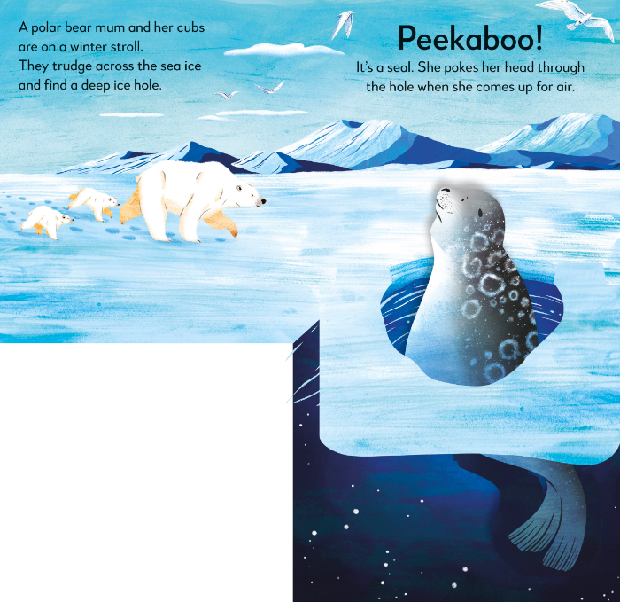 Babies and toddlers will love lifting the big flaps to find five peekaboo surprises pop up from the pages, including a sneaky seal and a howling wolf, making this board book a fun and easy story about winter animals and frozen landscapes.