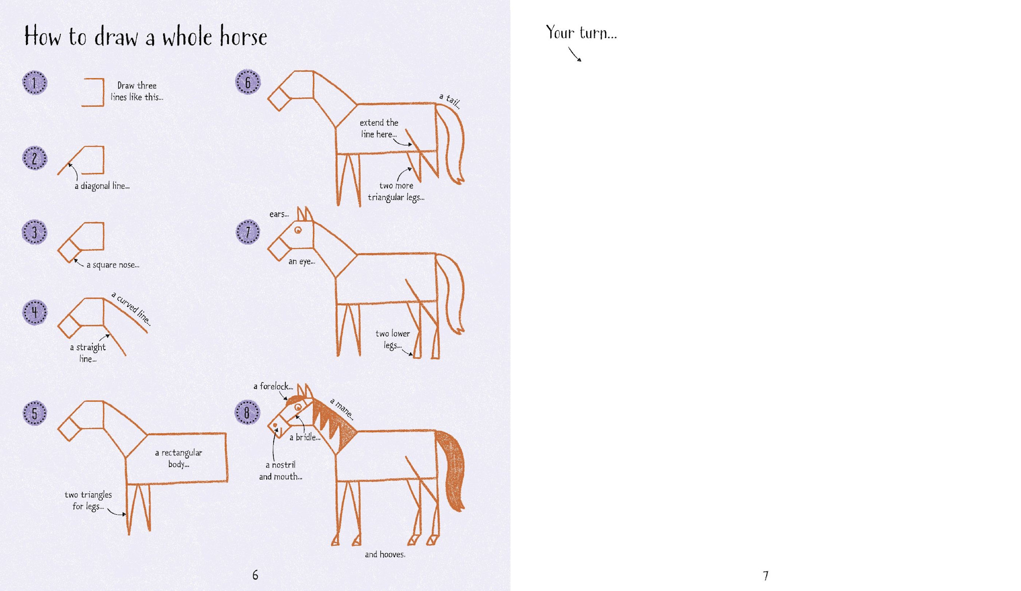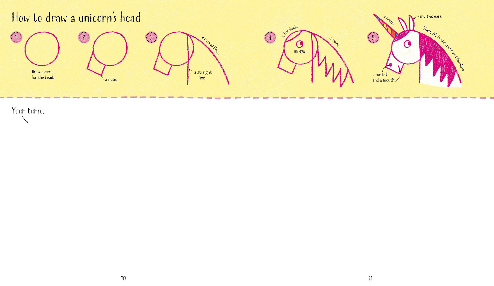 Children can discover how to draw lots of horses, ponies and unicorns in this colourful book with simple step-by-step instructions and lots of space to draw in. Learn how to draw a flying unicorn, a jumping horse, a rosette, castle and lots more, before completing detailed scenes including a horse show, stables and award ceremony.