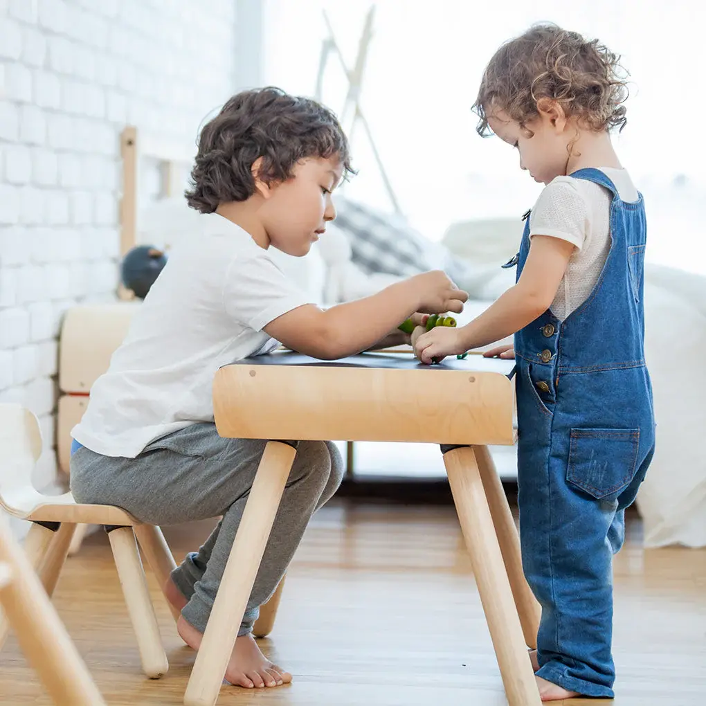 With a sleek wooden design, our multifunctional table is perfect for active children. There are 2 compartments for storage, sturdy and supportive legs, and a desk surface that kids can draw on with chalk. The chair is intentionally designed to contour nicely against little bodies. This set includes a table and a chair.
