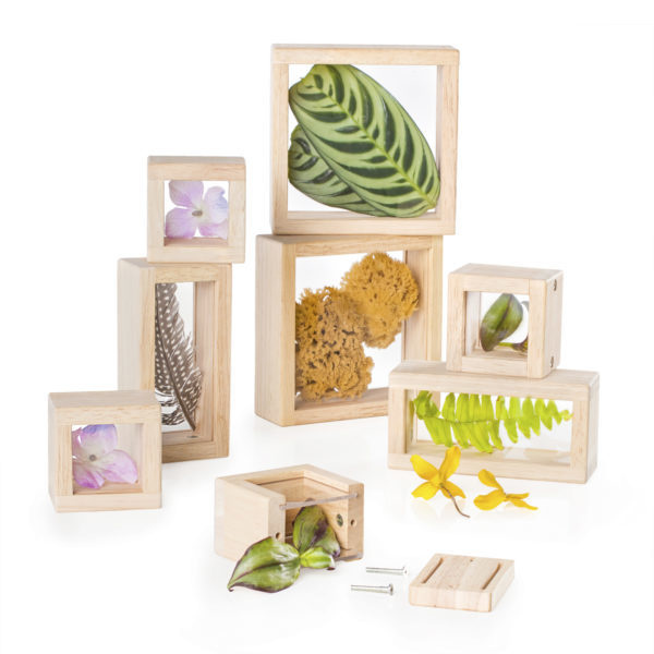 What can we find today? Collect trinkets, natural materials and sensory objects to place in the beautiful Treasure Blocks. Smooth hardwood frames with inset, transparent acrylic windows have a removable panel to place small objects to observe or display....Read more